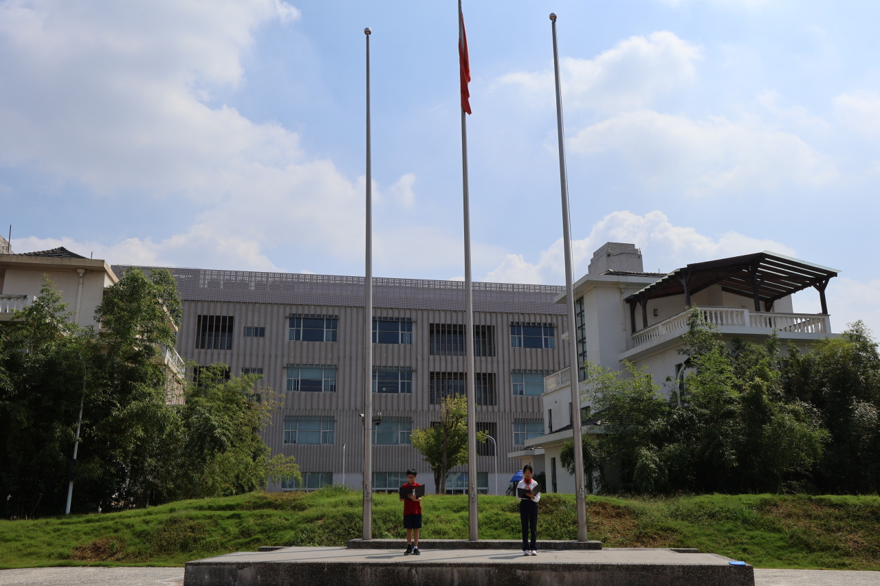 上午八点,全校师生齐聚操场,举行了新学期第一次升旗仪式。在庄严的国歌声中,五星红旗冉冉升起,全体师生面向国旗行注目礼,心中充满了对祖国的敬仰与热爱。